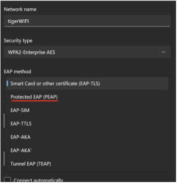 6. TigerWIFI will be labeled as Connected in your list of WiFi networks.